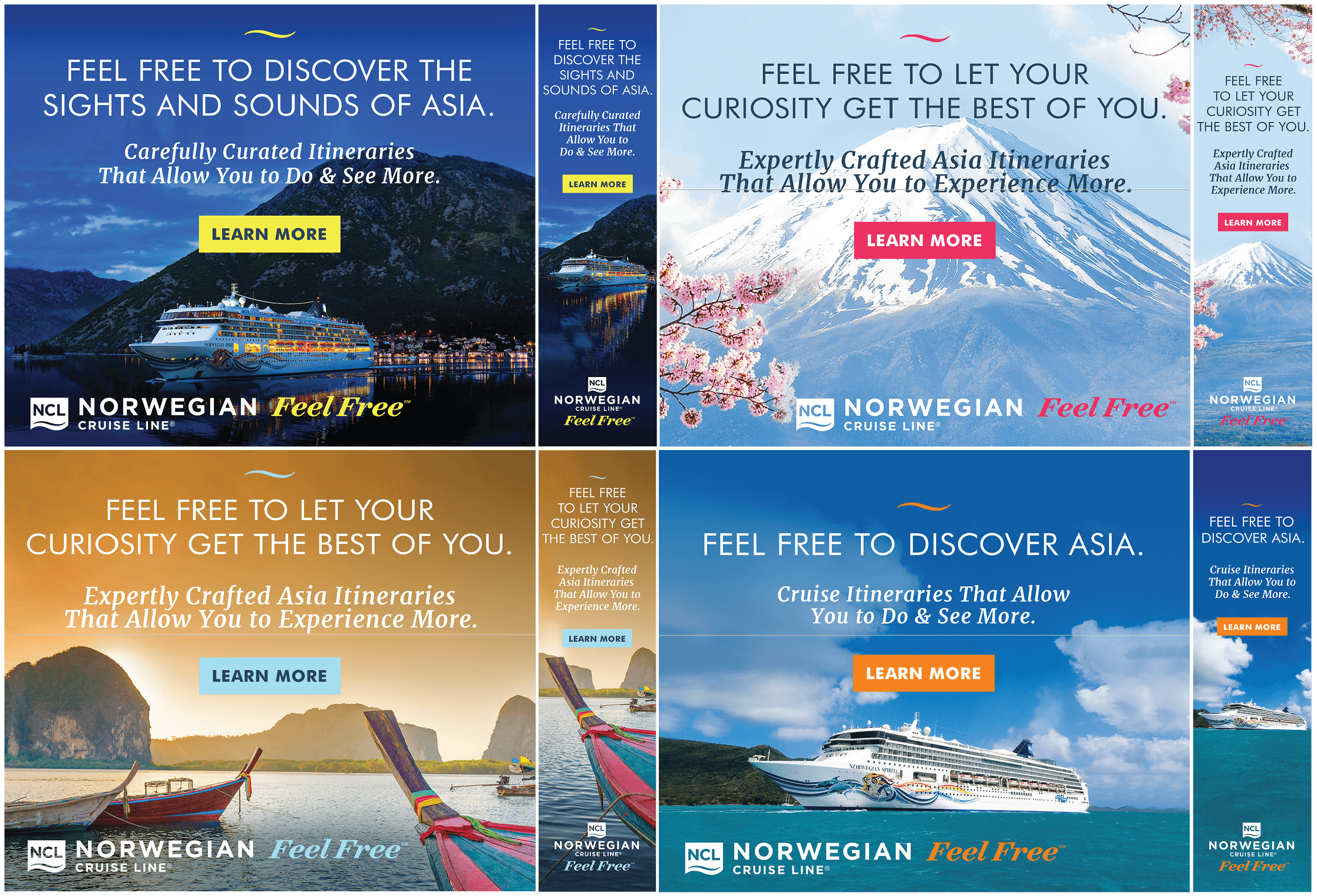 Strategic Campaign Evolution: For Norwegian Cruise Line, my "Live Free" direction successfully shifted the focus to excursions and activities, driving new interest through OOH designs that literally and figuratively "broke the frame."